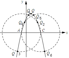 如图所示:以A为圆心,以AC长为半径作⊙A,⊙A交抛物线与Q1、Q2、Q3,以C为圆心,AC长为半径作⊙C,交抛物线与点Q4、Q5、Q6.![]()