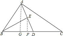 (2)过E作BC边的垂线即可得:E到BC边的距离为EF的长,然后过A作BC边的垂线AG,再根据三角形中位线定理求解即可.