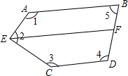 ∴∠1+∠AEF=180°,∠3+∠CEF=180°,∠4+∠5=180°,