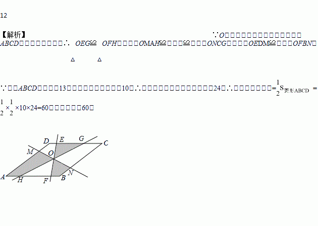 如图,四边形ABCD是菱形,O是两条对角线的交点,过O点的三条直线将菱形分成阴影和空白部分.当菱形的两条对角线的长分别为6和8时,则阴影部分的面积为__________.