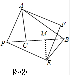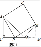 分析 (1)过E作CB垂线,交延长线于点M,可证△ACP≌△PEM,得出EM=PC,AC=PM,得出BM=EM,得出∠EBM=45°,求得∠EBP;