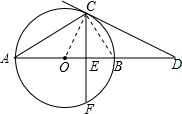 (2)利用等边三角形的判定和性质及切线的性质可得∠BCD,易得BC=BD,由垂径定理得CE的长,在直角三角形COE中,利用锐角三角函数易得OC的长,得BD的长.