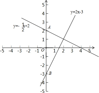 解答 解:直线y=-$\frac{1}{2}$x+2与直线y=2x-3分别交y轴于A、B点,两直线相交于C点,如图,![]()