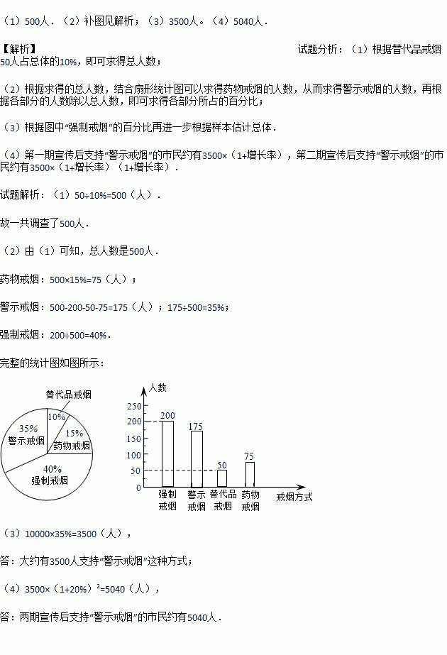 (4)为了让更多的市民增强“戒烟”意识,同学们在社区做了两期“警示戒烟”的宣传。若每期宣传后,市民支持“警示戒烟”的平均增长率为20%,则两期宣传后支持“警示戒烟”的市民约有多少人?