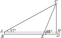 分析 由题意可先过点A作AH⊥CD于H.在Rt△ACH中,可求出CH,进而CD=CH+HD=CH+AB,再在Rt△CED中,求出CE的长.