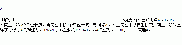 在平面直角坐标系中,将点A(1,﹣2)向上平移3个单位长度,再向左平移2个单位长度,得到点A′,则点A′的坐标是( )