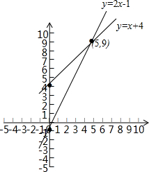 观察图象,可得交点坐标是(5,9),