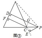 【变式探究】如图3,当点P在BC延长线上时,其余条件不变,求证:PD-PE=CF;