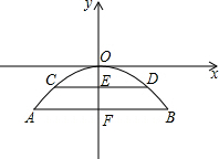 分析:建立如图所示的平面直角坐标系,求得抛物线的解析式,把点C、D的纵坐标代入函数解析式,求得相应的x值,则易求CD的长度.