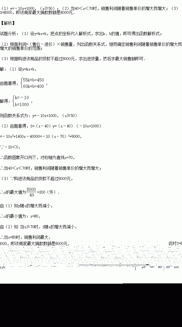 (3)服装店决定将一周的销售内衣的利润全部捐给福利院,在服装店购进该内衣的贷款不超过8000元情况下,请求出该服装店最大捐款数额是多少元?