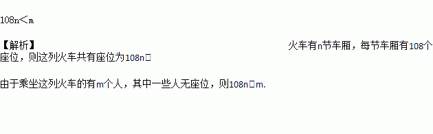 一列火车共有n节车厢,每节车厢有108个座位,在春运的某天,这列火车上有m个人,其中有一些人没有座位,上述关系可用不等式表示为___________.