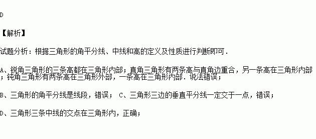 D.三角形三条中线的交点在三角形内