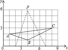 解答 解:分别作AB、BC的垂直平分线交于点P,由图形可知,点P的坐标为:(4,6),外接圆的半径为5.答:△ABC外心的坐标为(4,6),外接圆半径为5.