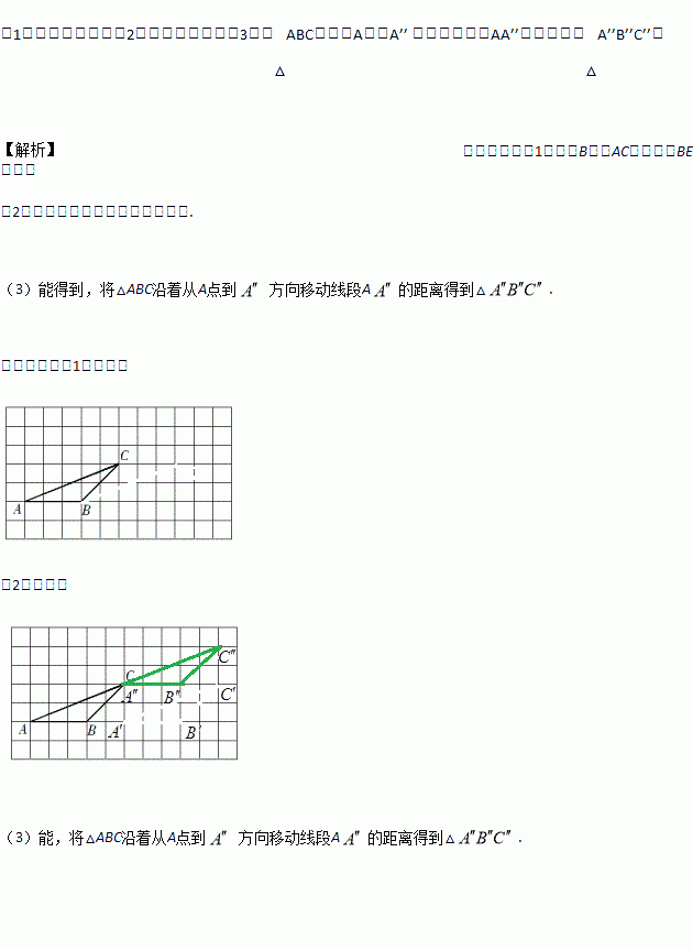 (3)对于(2)里面这两次平移的得到的图形能通过△ABC一次性平移得到吗?如果可以请你用合适的语言描述这个过程。