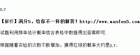根据表格,假如你去摸球一次,摸得红球的概率大约是 (结果精确到0.1).