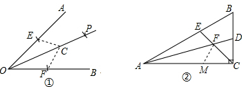 分析:(1)作图略在OA和OB上截取OE=OF,在OP上任取一点C,连接CE、CF,则△COE≌△COF;