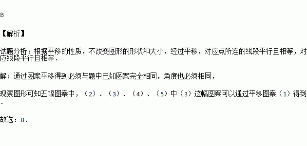 在如图五幅图案中,(2)、(3)、(4)、(5)中哪一幅图案可以通过平移图案(1)得到( )
