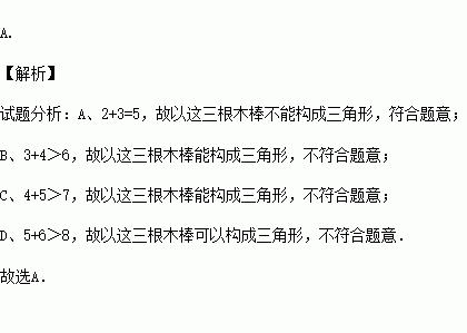 下列每组数分别表示三根木棒的长度,将它们首尾连接后,不能摆成三角形的一组是( )