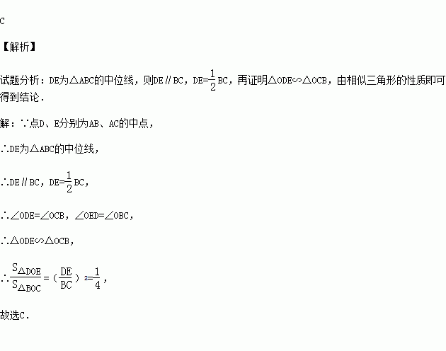(2015秋•保定期末)如图,D,E分别是△ABC的边AB,AC上的中点,CD与BE交于点O,则S△DOE:S△BOC的值为( )