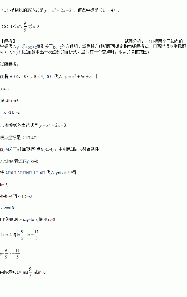 (2)设点M关于y轴的对称点是N,此抛物线在A,B两点之间的部分记为图象W(包含A,B两点),经过点N的直线l:
