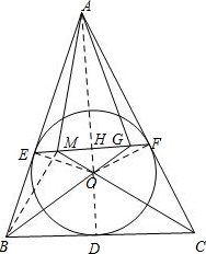 ∠ABO=∠CBO=$\frac{1}{2}$∠ABC,∠BCO=$\frac{1}{2}$∠ACB,∠EAO=∠FAO=$\frac{1}{2}$∠BAC,
