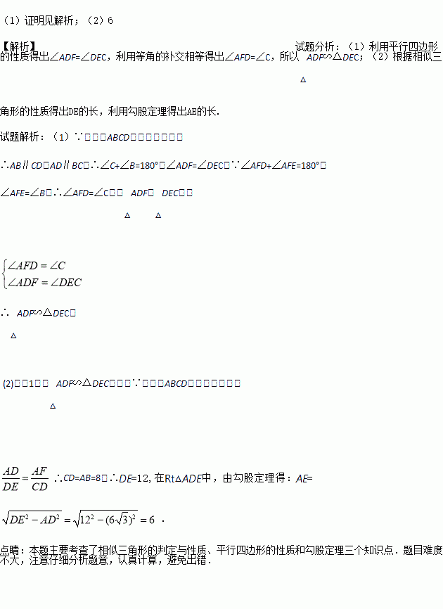 (2)若AB=8,AD=6,AF=4,求AE的长.