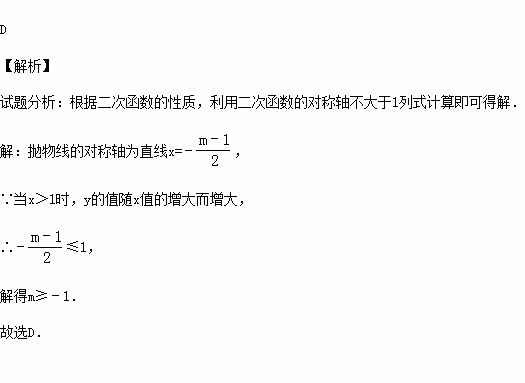 (2015•常州)已知二次函数y=x2+(m﹣1)x+1,当x>1时,y随x的增大而增大,而m的取值范围是( )