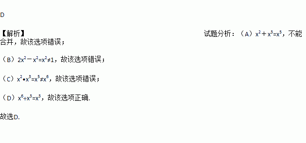 A. x2 + x3 = x5 B. 2x2- x2 = 1