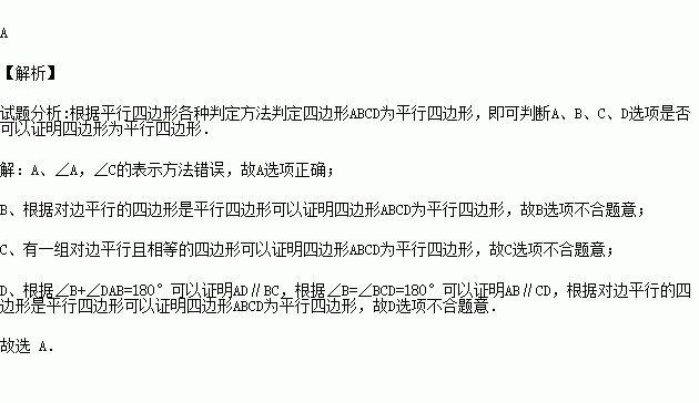 A.∠B=∠D,∠A=∠C