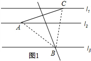 分析 (1)作出线段AC的垂直平分线,使得点B落在直线l3上,连结AB,BC,△ABC即为所求;