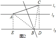 (2)如图2,过点C作CD⊥l3于D,过点A作AE⊥l3于E,![]()