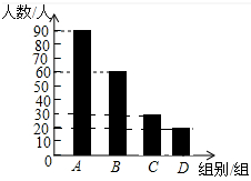 解答 解:(1)从条形图和扇形图可知,A组人数为90人,占45%,