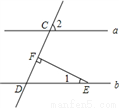 如图,直线a∥b,EF⊥AD于点F,∠2=70°,则∠1的度数是 ______ .