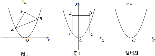 15.如图1,点A,B分别是二次函数y=2x2的图象上的两个点,A、B的横坐标分别为a,b(a<0,b>0),点P(0,t)是抛物线对称轴上的任意一点.