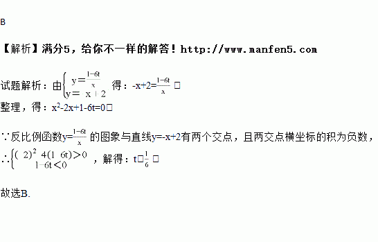 的图象与直线y=﹣x+2有两个交点,且两交点横坐标的积为负数,则t的取值范围是( )