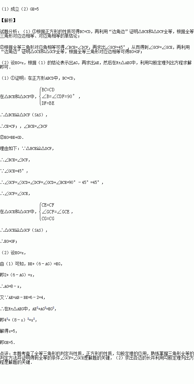 ②如图1,若点G在AD上,且∠GCE=45°,则GE=GF成立吗?为什么?