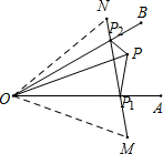 解:分别作点P关于OA、OB的对称点M、N,连接MN,分别交OA、OB于点P1、P2,连接OM、ON、PP1、PP2,此时△PP1P2的周长最小,△PP1P2的周长=P1P2,PP1+P1P2+PP2=MP1+P1P2+NP2=MN,