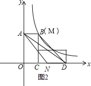 £¨3£©Èçͼ2£¬ÉèN£¨x£¬0£©£¬M£¨a£¬$\frac{2}{a}$£©£¬![]()
