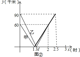 分析:(1)由乙图象可知:A在B与C的中间:AC=90km,AB=60km,则可求得BA:AC的值,继而可在图①中标出A地的大致位置;