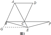 ¹ýµãE×÷EG¡ÎBC½»ABÑÓ³¤ÏßÓÚµãG£¬Èçͼ3Ëùʾ£º![]()