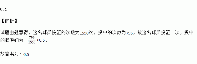 如表记录了一名球员在罚球线上投篮的结果.那么,这名球员投篮一次,投中的概率约为 (精确到0.1).