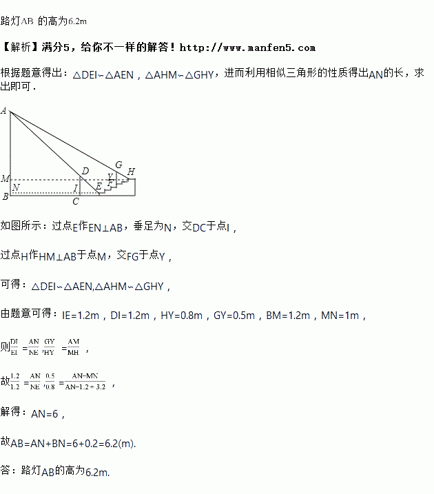 处.其影子刚好落在第六级台阶的边缘![]()