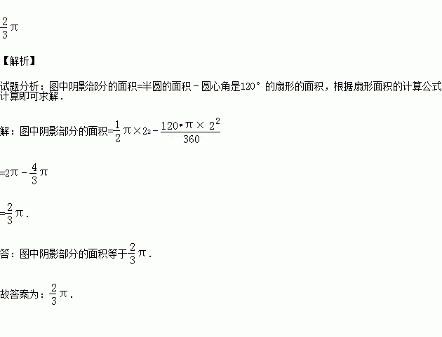 (2015秋•宜城市期末)如图,已知C,D是以AB为直径的半圆周上的两点,O是圆心,半径OA=2,∠COD=120°,则图中阴影部分的面积等于 .