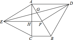 分析:根据已知先判断△ABC≌△EFA,则∠AEF=∠BAC,得出EF⊥AC,由等边三角形的性质得出∠BDF=30°,从而证得△DBF≌△EFA,则AE=DF,再由FE=AB,得出四边形ADFE为平行四边形而不是菱形,根据平行四边形的性质得出AD=4AG,从而得到答案.