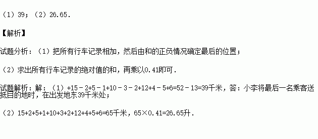 (2)若汽车耗油量为0.41升/ 千米,这天下午小李共耗油多少升?