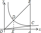分析:作DE⊥OA于E点,易得DE∥AB,根据三角形相似的判定得到Rt△OED∽Rt△OAB,则DE:AB=OE:OA=OD:OB,而OD=