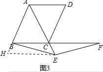 (3)作EH∥BC交AB的延长线于H,证明△BHE≌△ECF,得到BE=EF.