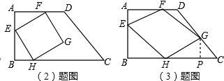 (3)过点G作GP⊥BC于P,根据两边分别互相平行的两个角相等(或互补)可得∠AEF=∠PGH,根据菱形的四条边都相等可得EF=GH,然后利用“角角边”证明△AEF和△PGH全等,根据全等三角形对应边相等可得PG=AE,HP=AF,然后表示出CP、BH,在Rt△AEF和Rt△BEH中,利用勾股定理列式表示出EF2和EH2,然后列出方程求解即可.
