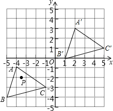 (2)由图可知,A′(2,3)、B′(1,0)、C′(5,1);