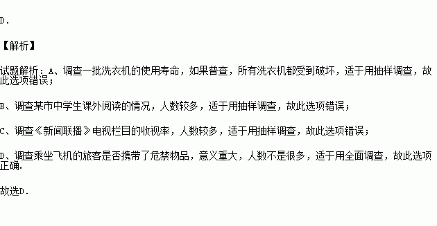 A.一批洗衣机的使用寿命 B.了解某市中学生课外阅读的情况.